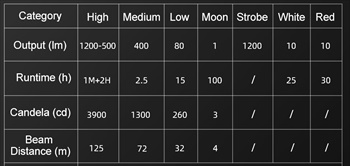 Μέγιστη απόδοση 1200 lumens, μέγιστος χρόνος